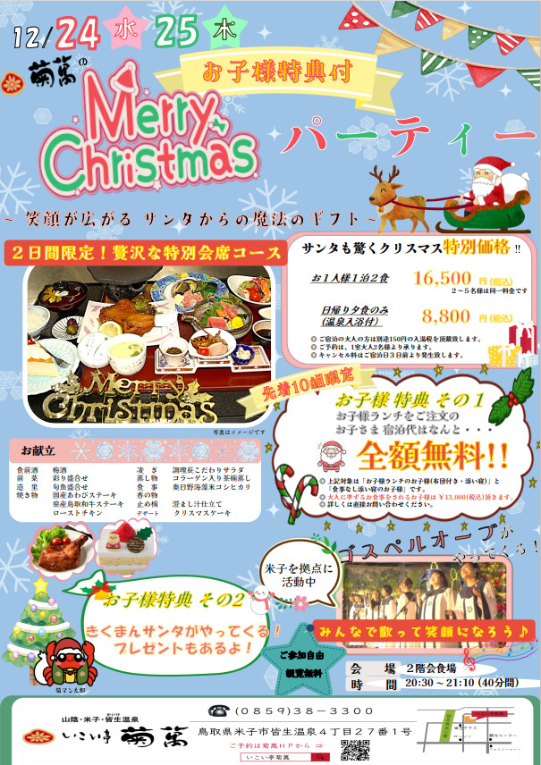 【特別企画】【お子様特典付クリスマス特別会席<12/24~12/25>】\先着10組様限定/お子様用のお食事をご希望のお子様は全額無料♪